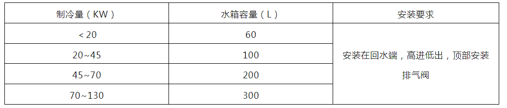 ①、儲能水箱容易受水系統總水容量、末端同時使用臺數及空調主機配置的情況影響,一般系統的總容水量為6~10L/KW制冷量,同時使用臺數低的選大值。②、計算總容水量(6~10L/KW X 機組制冷量KW)-當前系統實際水容量=蓄能水箱容量。
