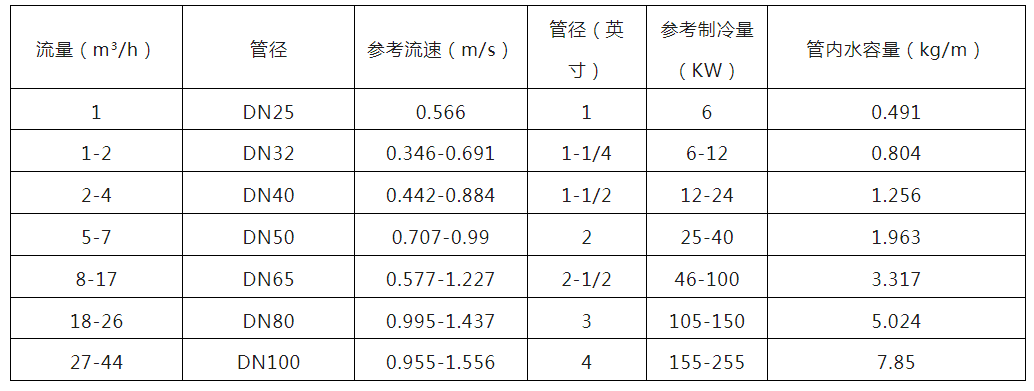 空調水管徑選型表