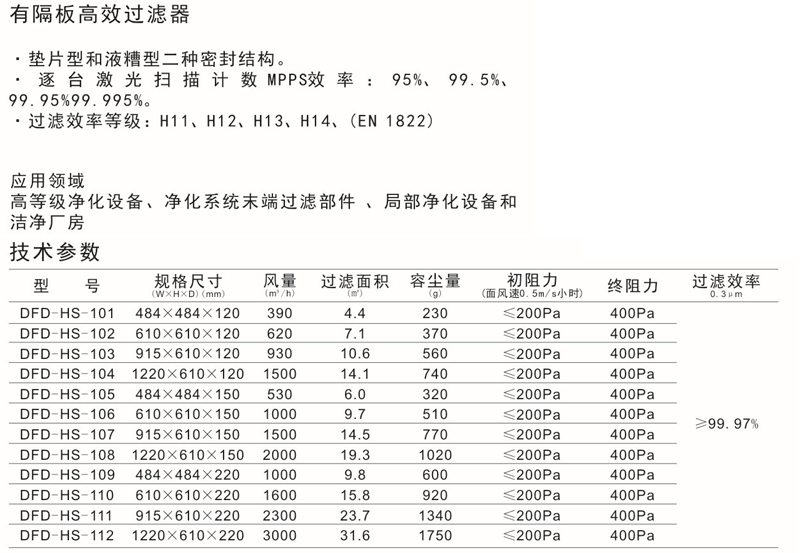 有隔板高效過濾器